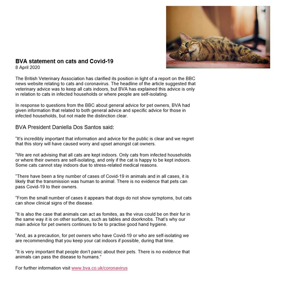 All the latest news about cats from the bbc. There have also been isolated cases of dogs testing positive for the. We also recommend that owners who are confirmed or suspected to have covid 19 should keep their cat indoors if possible but only if the cat is happy to be kept indoors. Cats can catch flu from humans and some have caught the covid 19 virus.