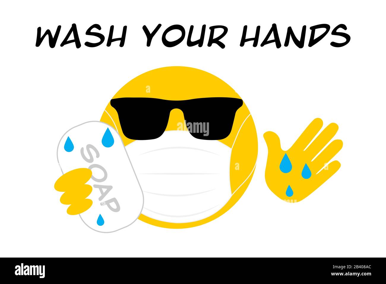 Wash Your Hands Emoji Washing Hands With Soap Wearing Sunglasses Face Mask Its Cool To Prevent The Spread Of Virus Coronavirus Covid19 Concept Stock Photo Alamy